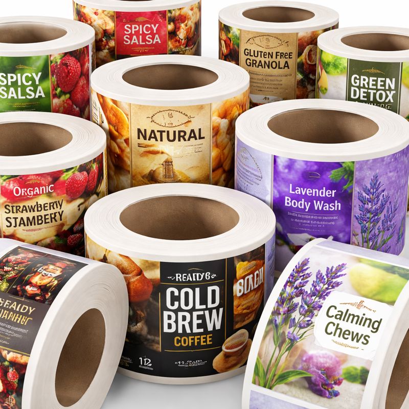 Etiquetas impresas en rollo o por hoja, con materiales y acabados para tu producto.
